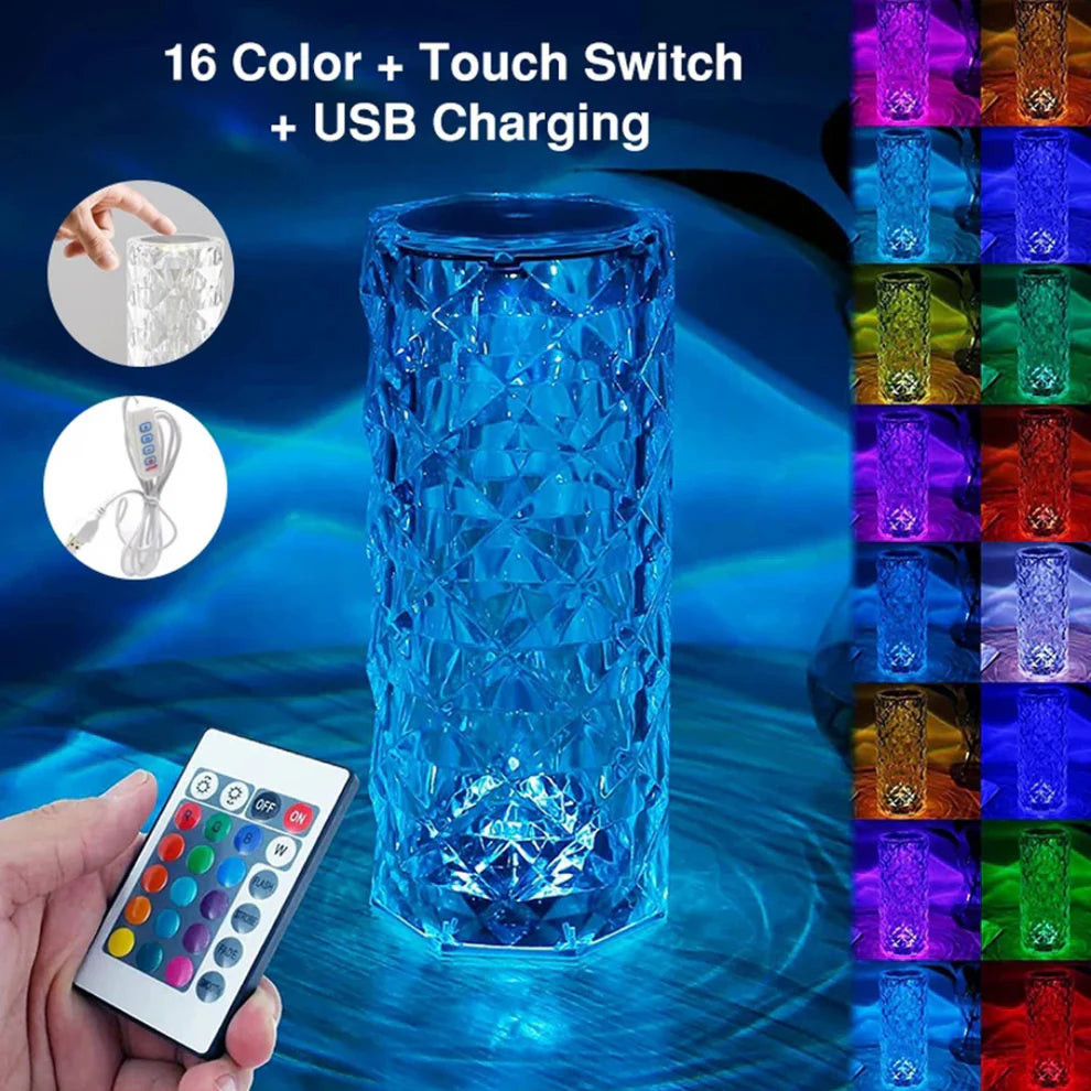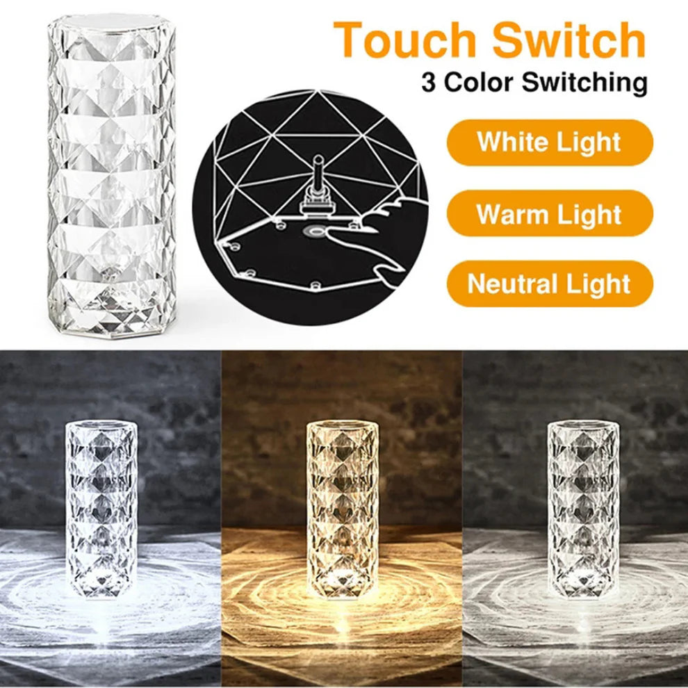 Dale un toque sofisticado y acogedor a tu hogar con la Lámpara Destellos de Diamante. Su diseño en acrílico con efecto de luz en forma de diamante la convierte en el complemento perfecto para cualquier habitación. Con tres niveles de brillo ajustables y batería recargable, es ideal para crear el ambiente perfecto en cualquier momento.