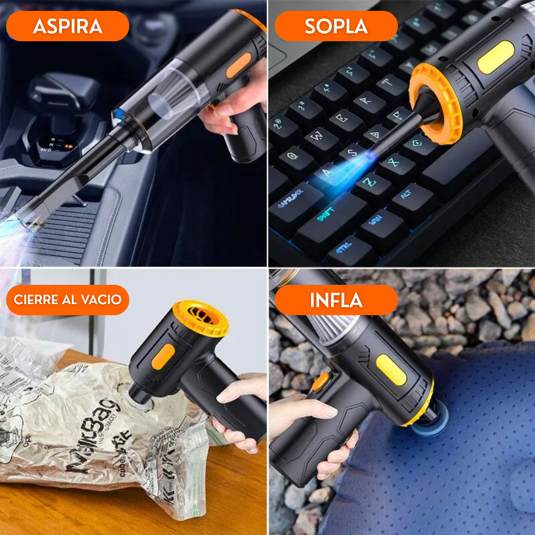 PowerClean 4X llegó para solucionarte todo eso en minutos. No solo es una aspiradora… 💨 ¡Es una herramienta 4 en 1 que aspira, sopla, infla y limpia en seco o húmedo!